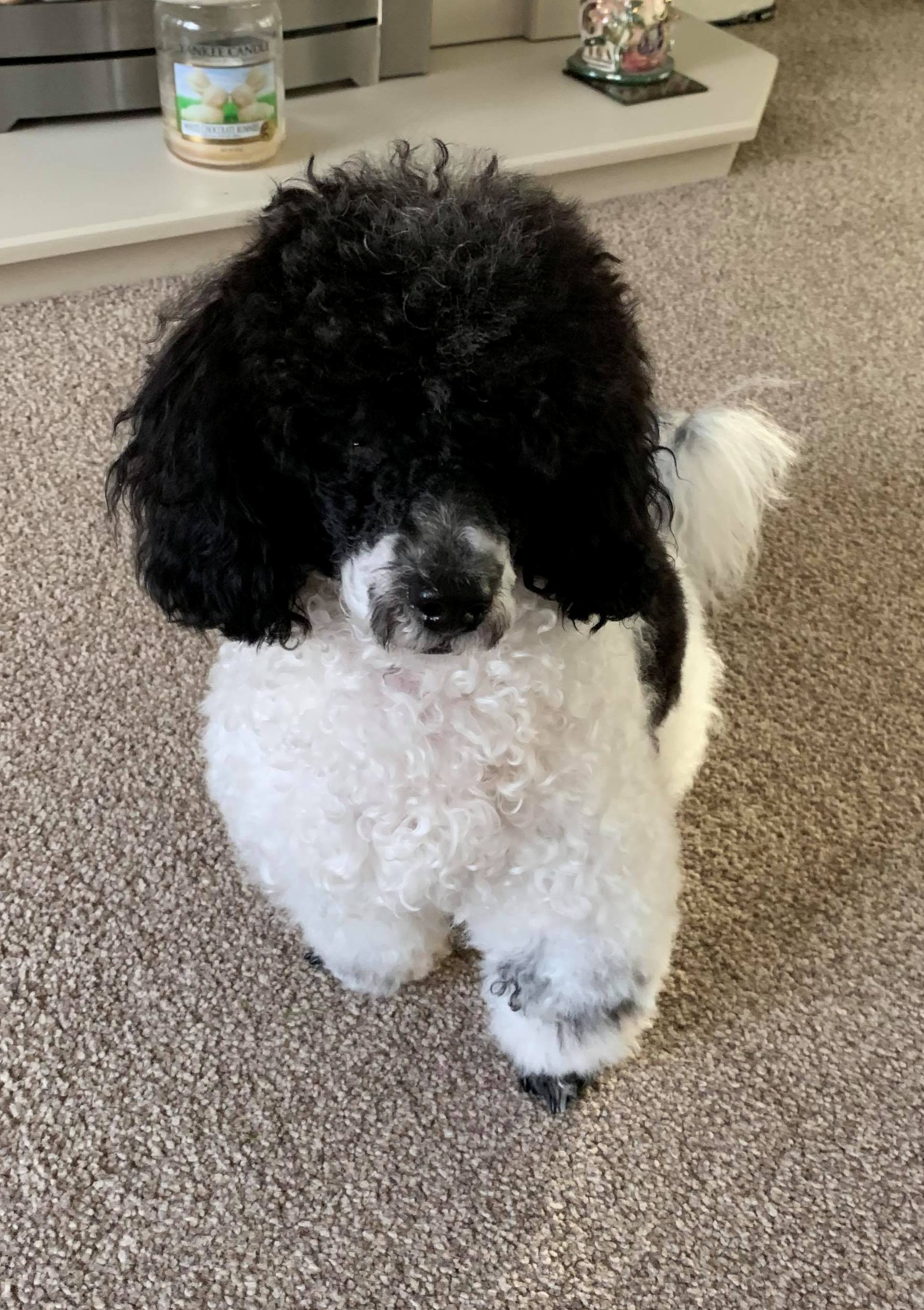 Pet Name: Wee Geordie Breed: Toy Poodle Gender: Male Colour: Black/White Parti DOB: 17/01/2019 KC Registered Both Parents DNA tested Clear N/N for PRA-Prcd Both Parents DNA tested Clear N/N for vWD Type 1 Availability: SOLD Wee Geordie at 8 mths ![]() |