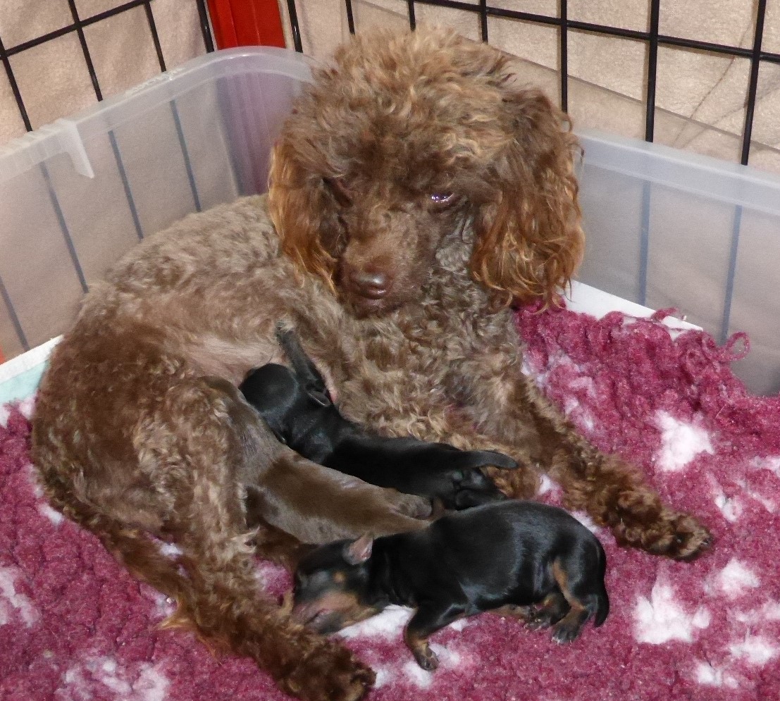 Toy Poodle Gender: Female Colour: Black (white chin, chest and rear paws) DOB: 11/02/20017 KC Breed Registration Health Tests: Both Parents DNA tested Clear N/N for PRA-Prcd Health Tests: Both Parents DNA tested Clear N/N for vWD Type 1 Expected Adult Weight: 4kg Availability: SOLD |