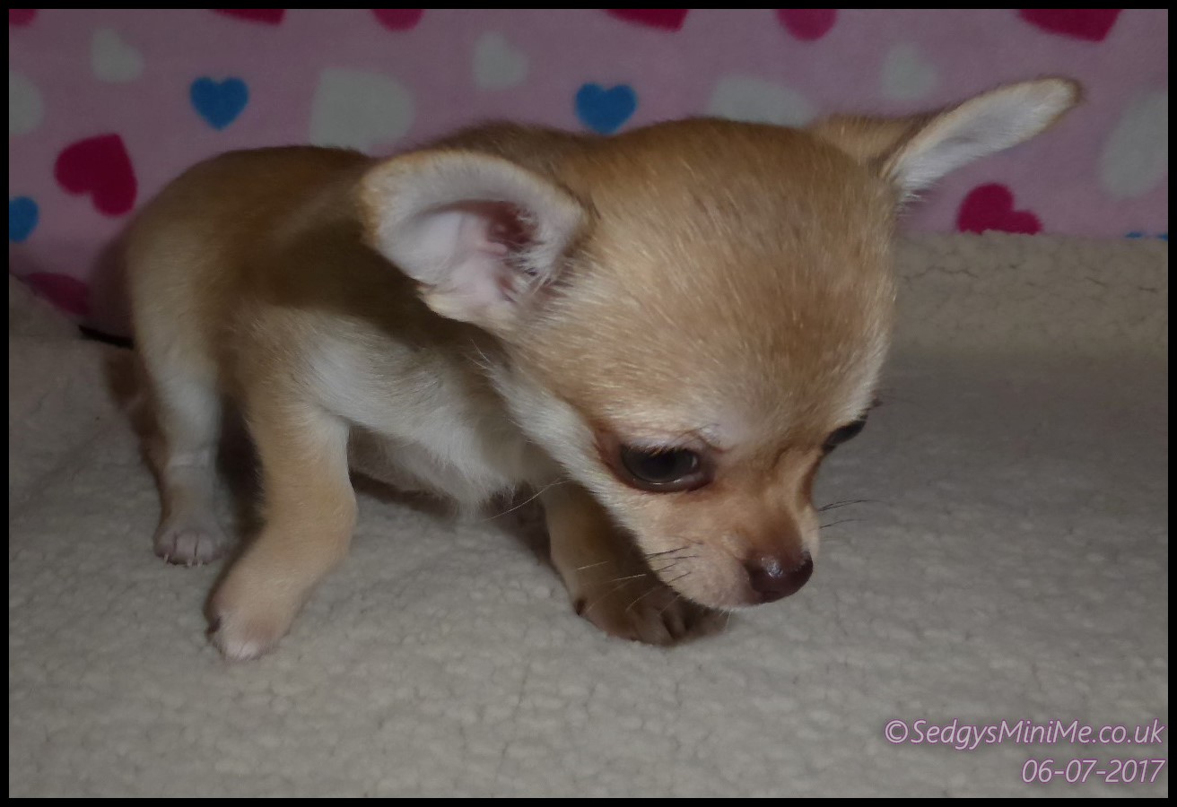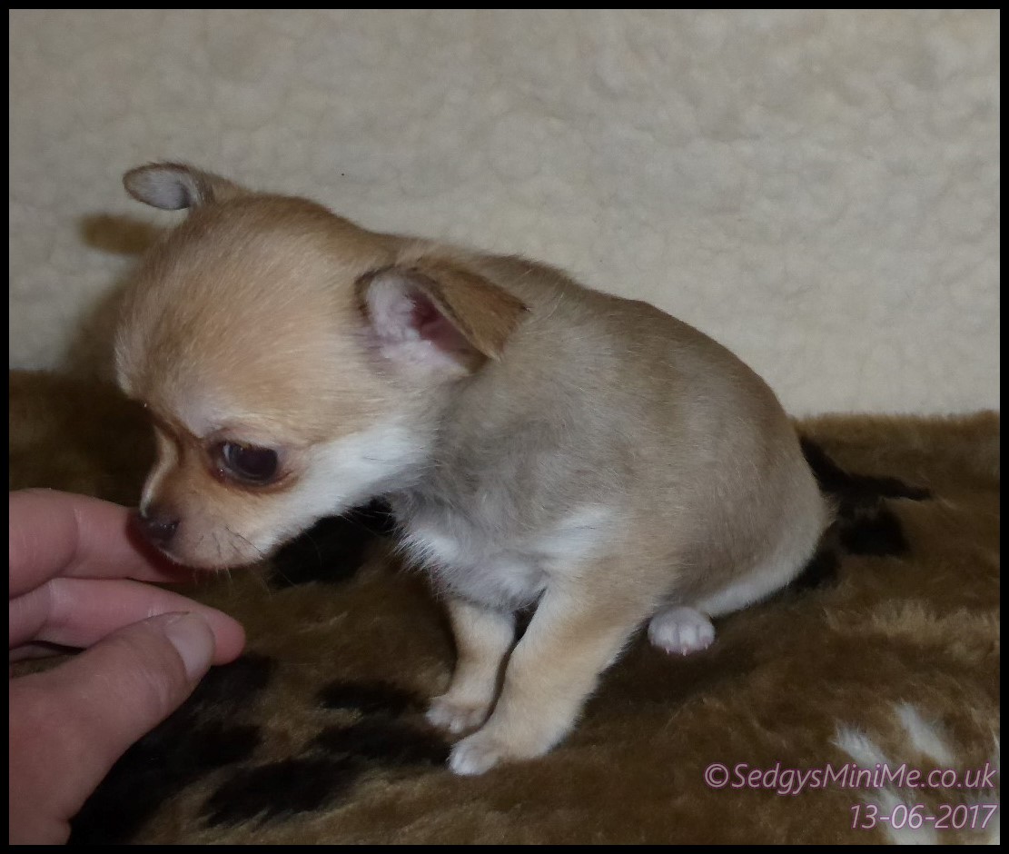 Pet Name: Minnie Breed: Smooth Coat Chihuahua Gender: Female Colour: Chocolate Fawn DOB: 21/04/2017 KC Companion Registration Expected Adult Weight: 2kg Video Clips of all current pups |