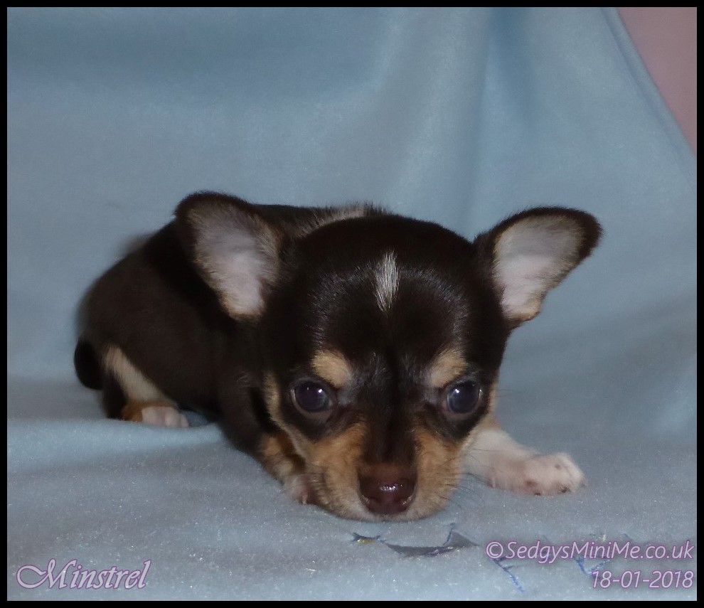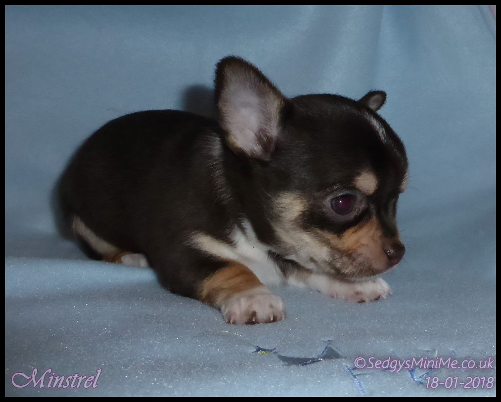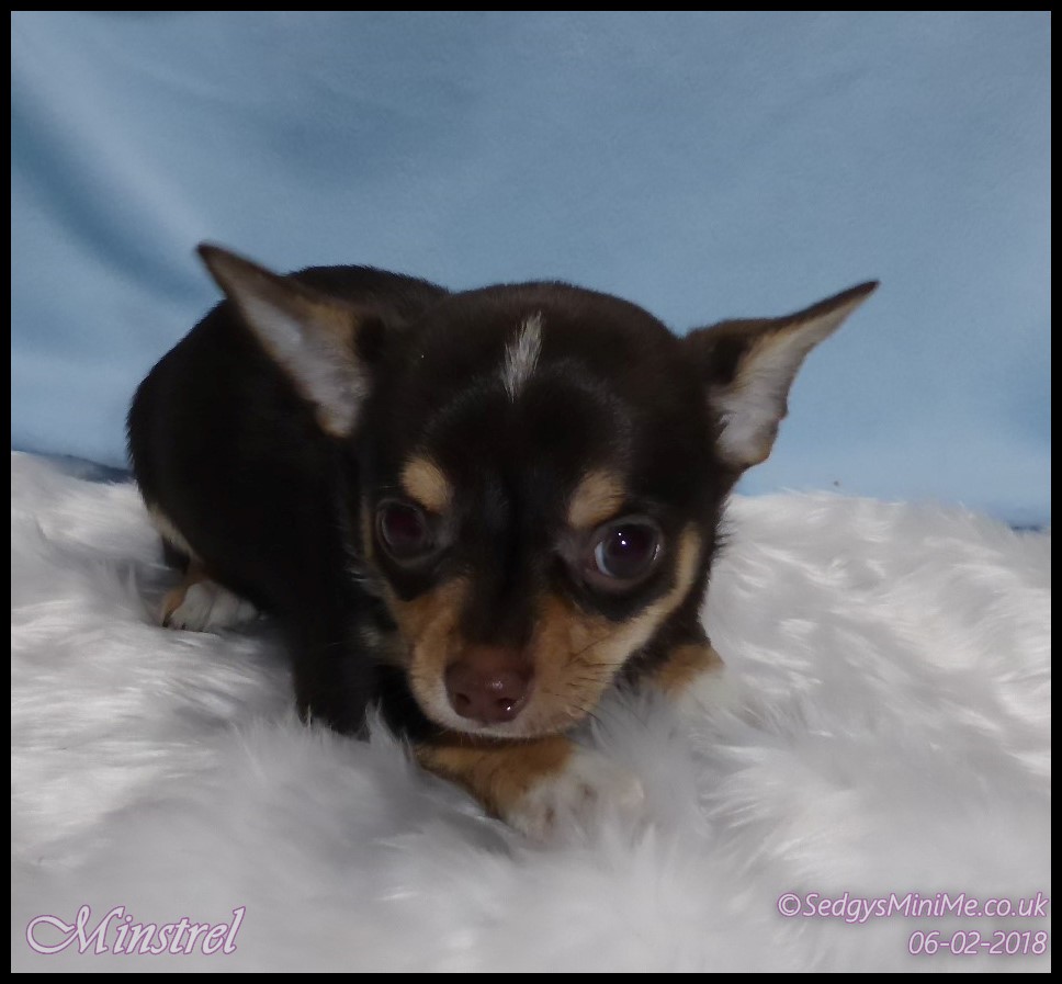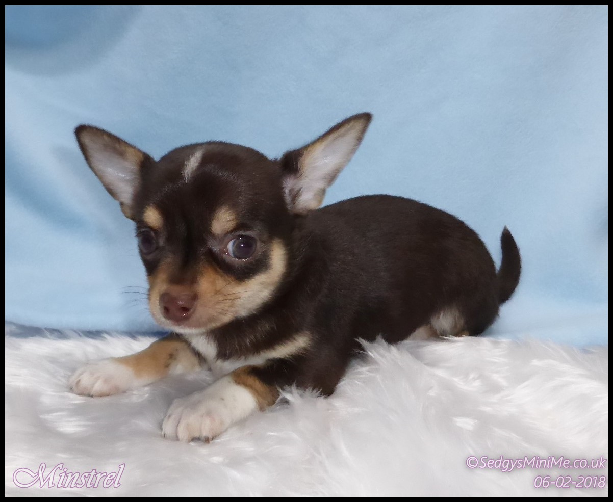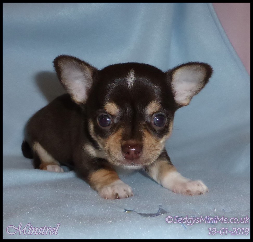 Pet Name: Minstrel Breed: Chihuahua Coat: Smooth Gender: Male Colour: Chocolate Tricolour Expected Adult Weight: 2-2.5kg Availability: No Longer For Sale: Staying With Me :-) |