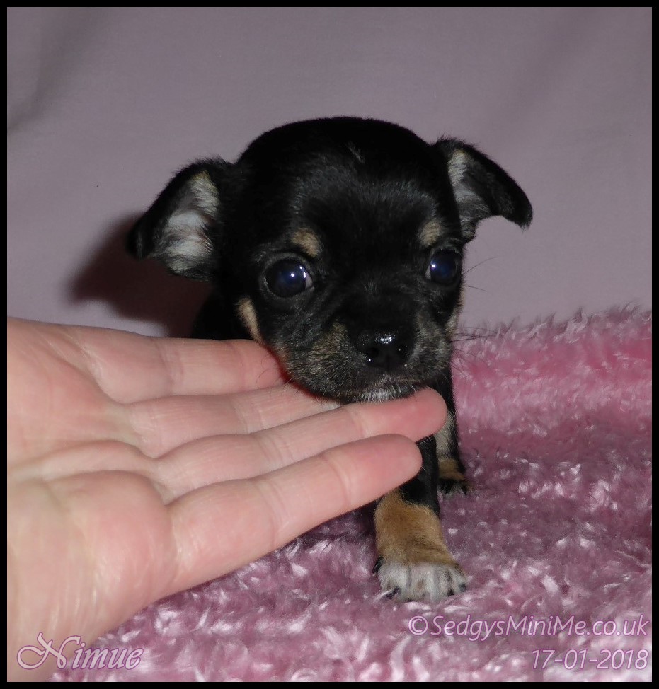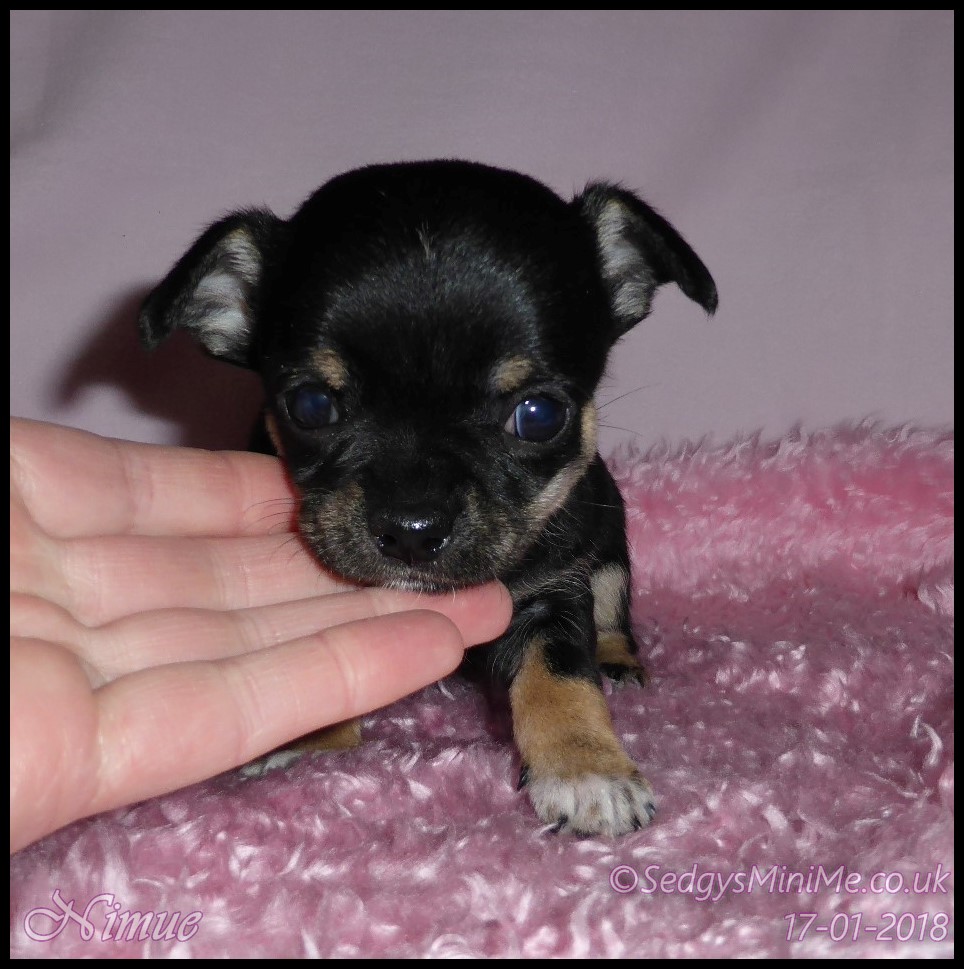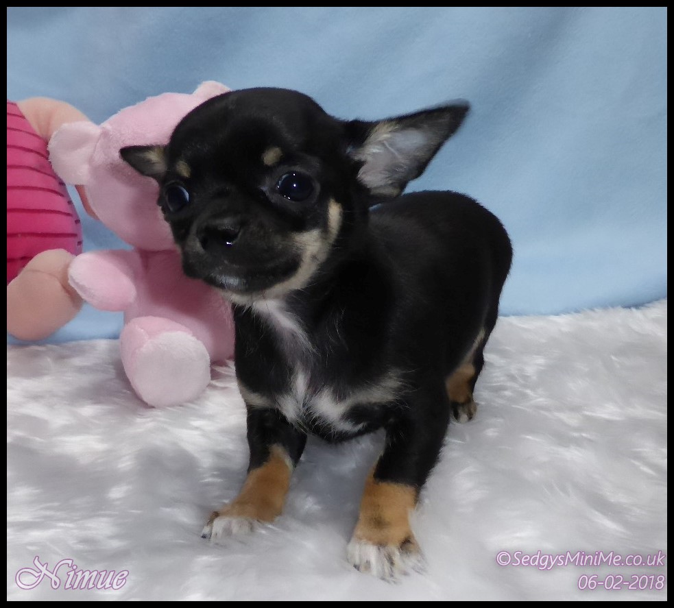 Pet Name: Nimue Breed: Chihuahua Coat: Smooth Gender: Female Colour: Black Tricolour DOB: 13/12/2017 KC Companion Registration Expected Adult Weight: 1.8-2kg Availability: SOLD |